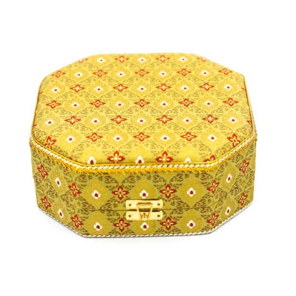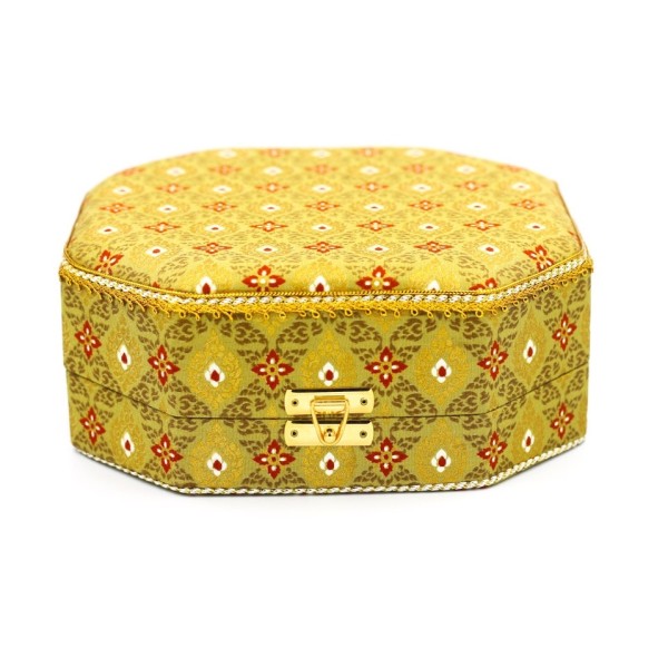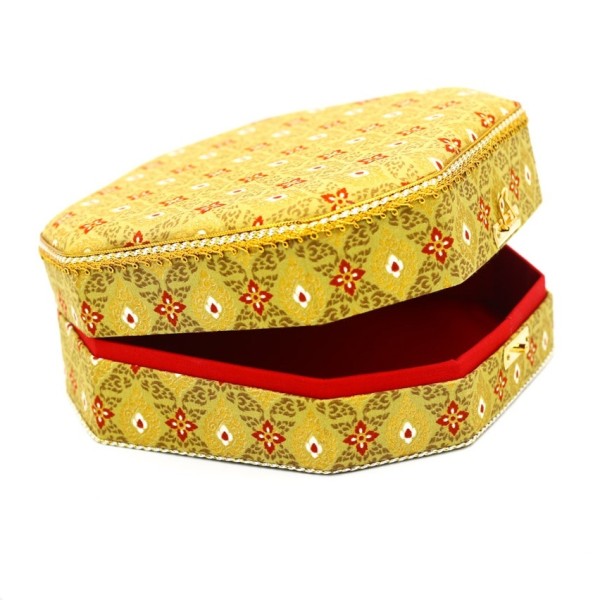 กล่องแปดเหลี่ยมใหญ่ ผ้าพิมพ์ทองลายไทยสีเหลือง