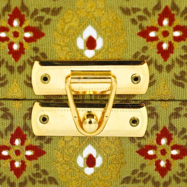 กล่องใส่ของอเนกประสงค์ ใส่เครื่องประดับ ทรงแปดเหลี่ยมขนาดใหญ่ ทำจากผ้าพิมพ์ทองลายไทย งานฝีมือหัตถกรรมไทย 100% ผลิตโดยพิพิธภัณฑ์เรือนไทย จังหวัดกำแพงเพชร