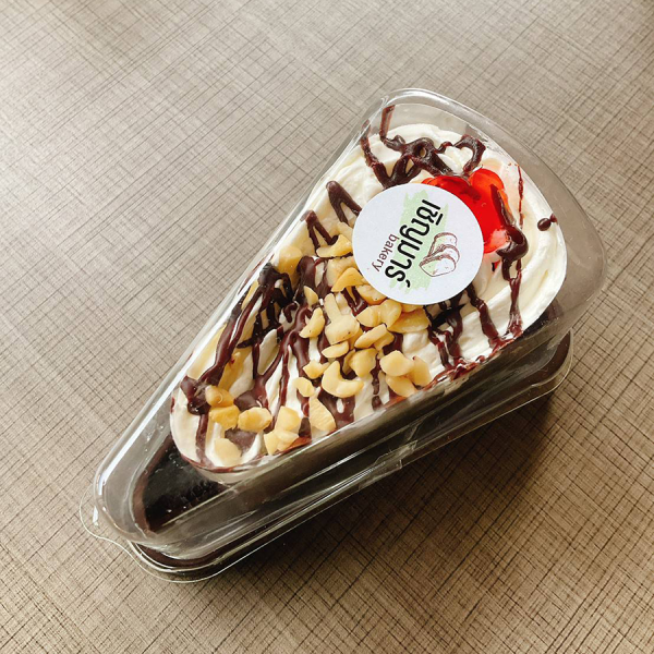 เค้กสามเหลี่ยมครีมโรยถั่ว
