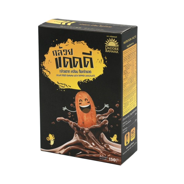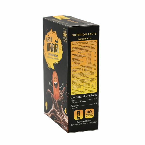 กล้วยตากอร่อยคู่กับช็อกโกแลตเกรดพรีเมียม เข้ากันดีมากๆ ความอร่อย x2 ไม่ลองไม่ได้แล้วจ้า!!!!! เคี้ยวหนึบกินเพลิน อิ่มท้องนานให้พลังงานสูง ขนาด 150 กรัม
