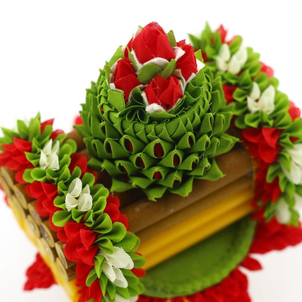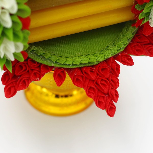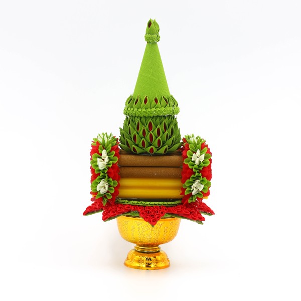- พุ่มดอกไม้ผ้าวางบนฐานเลียนแบบใบตอง 1 ชุด