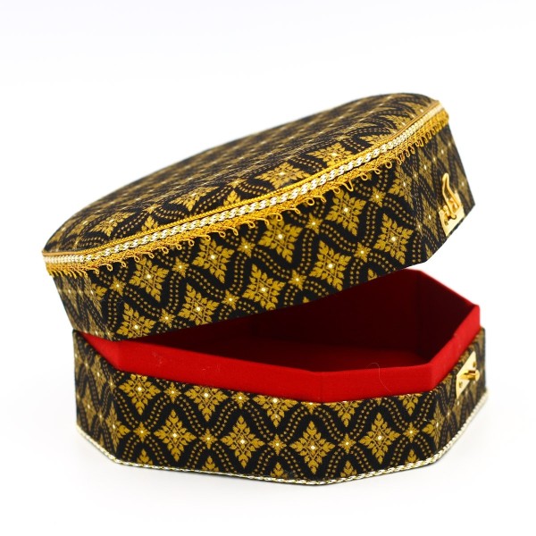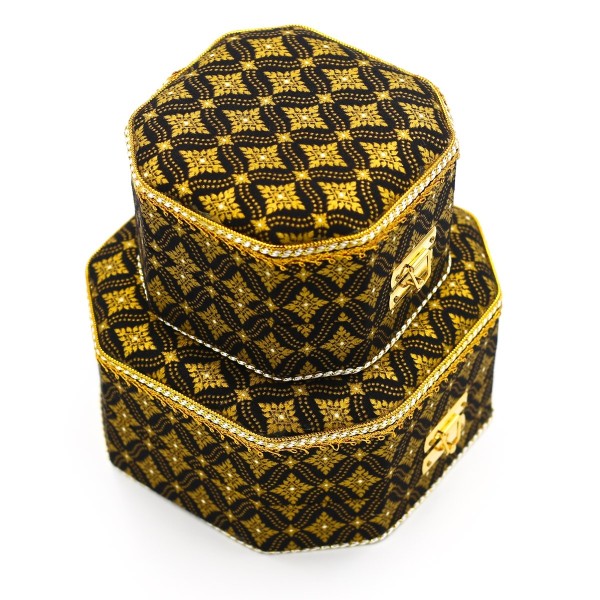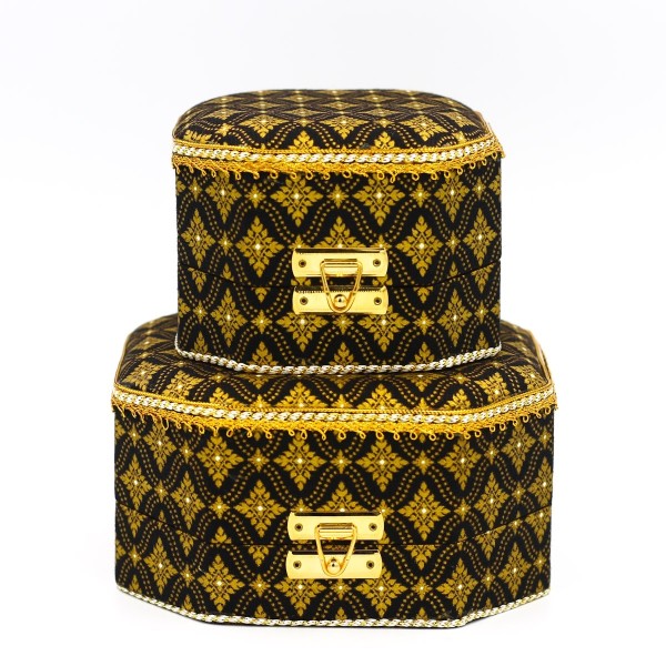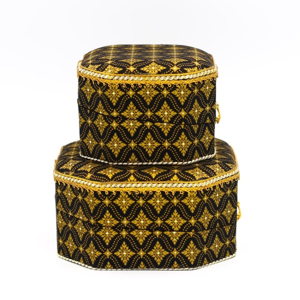 ชุดกล่องแปดเหลี่ยม 2 ใบ ผ้าพิมพ์ทองลายไทยสีดำ