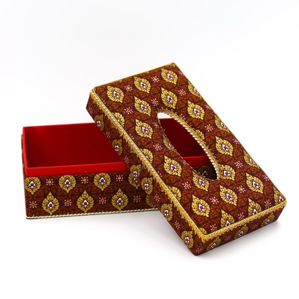 กล่องใส่กระดาษทิชชู(รีฟิว) ผ้าพิมพ์ทองลายไทย งานฝีมือหัตถกรรมไทย 100% ผลิตโดยพิพิธภัณฑ์เรือนไทย จังหวัดกำแพงเพชร
