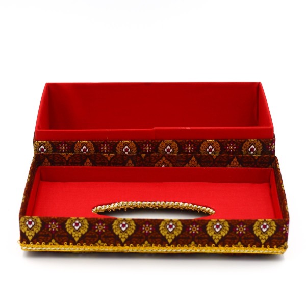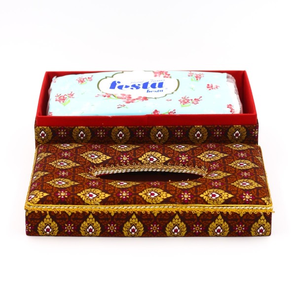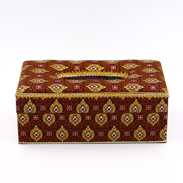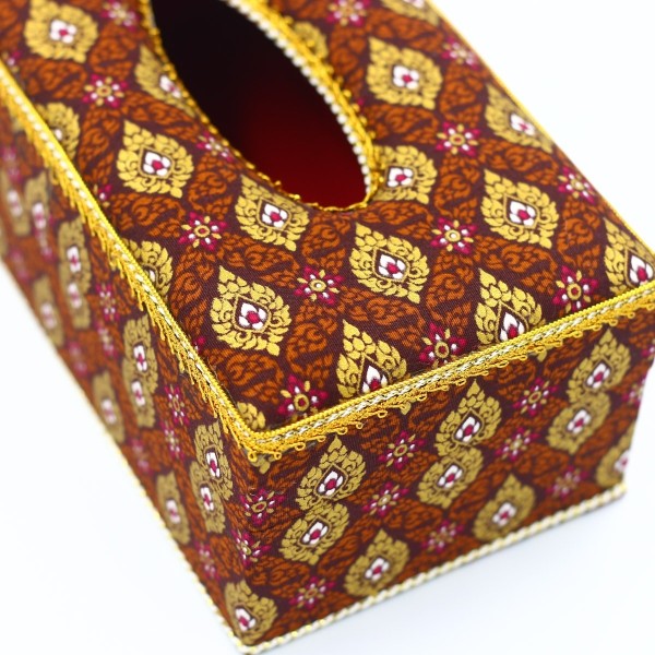 กล่องกระดาษทิชชู(รีฟิว) ผ้าพิมพ์ทองลายไทยสีน้ำตาล